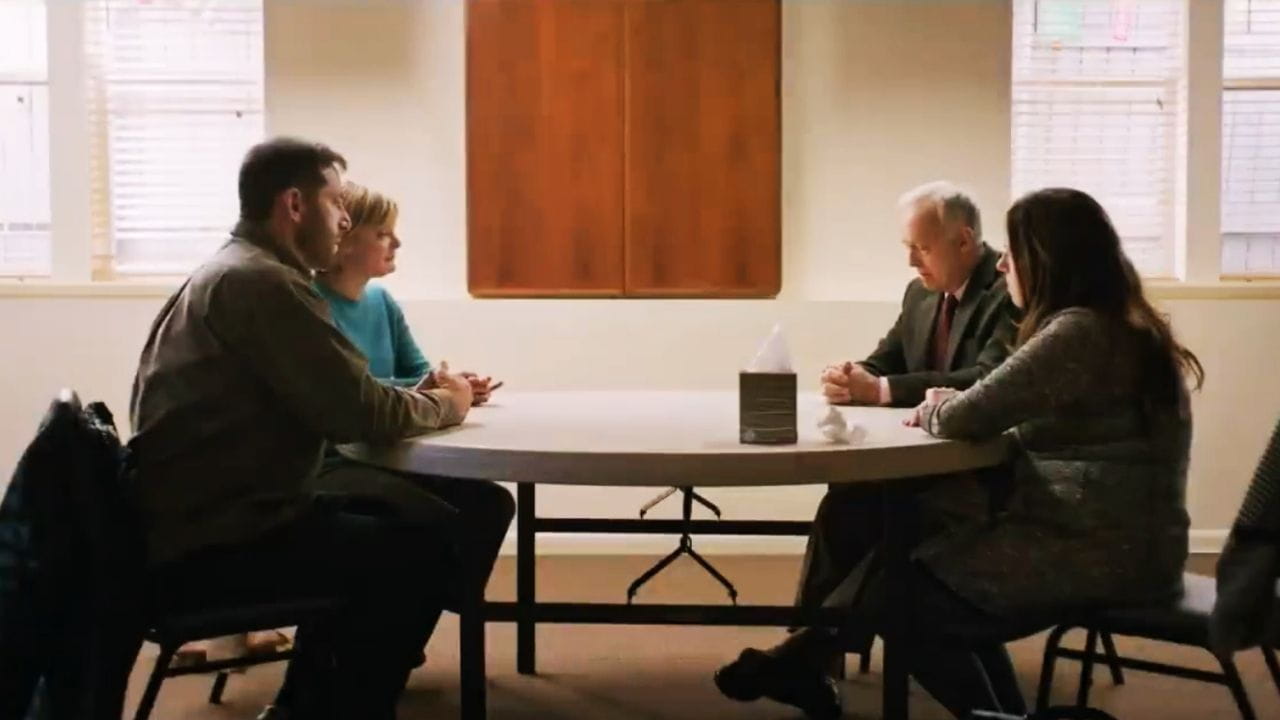 Two families confront tragedy in a single room.